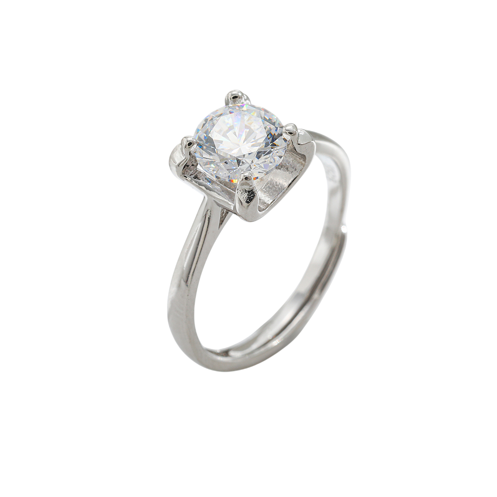 Anillo elaborado en plata 925, en tono plata con recubrimiento PVD, de ajuste regulable. Destaca por su circonia cuadrada de gran tamaño y alto brillo, que captura la luz con un efecto elegante y sofisticado.