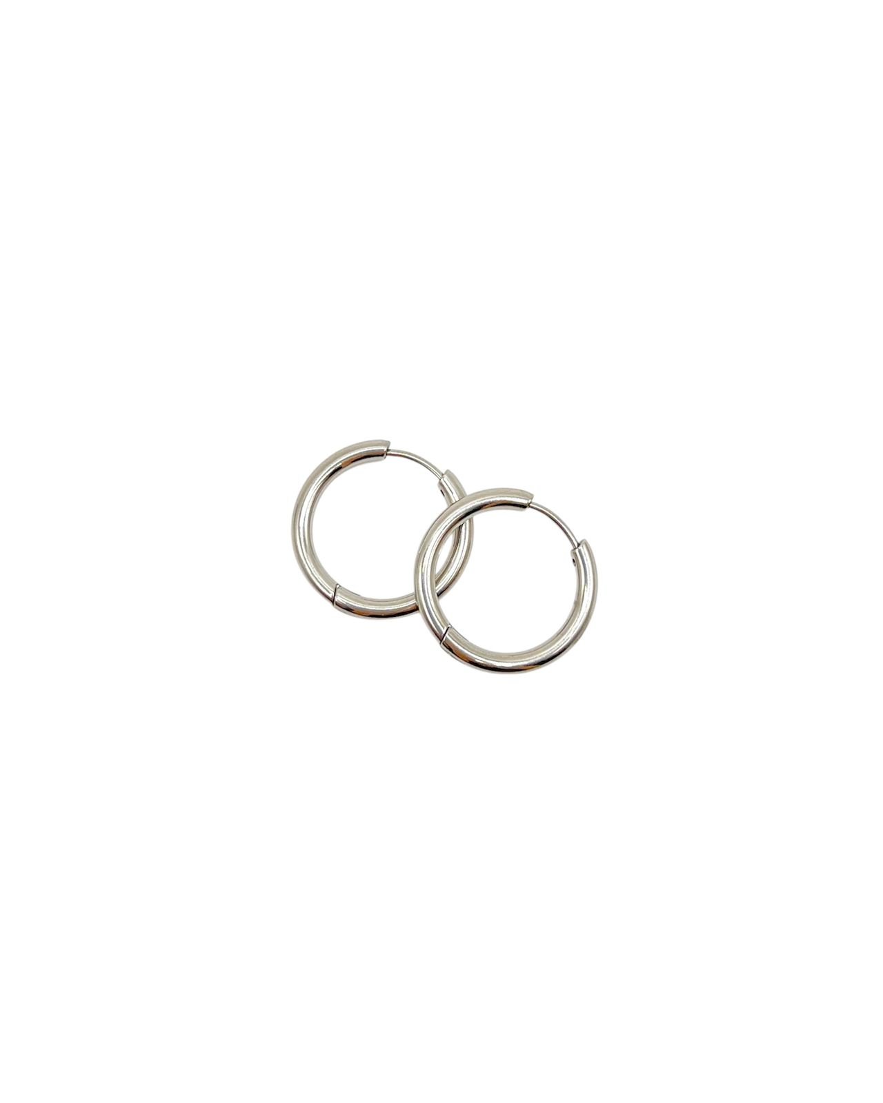 Argollas clásicas de acero inoxidable con acabado plata espejo. Diseño delgado y cierre de clic continuo; hipoalergénicas y perfectas para uso diario. Disponibles en 14 mm y 16 mm de diámetro interno.