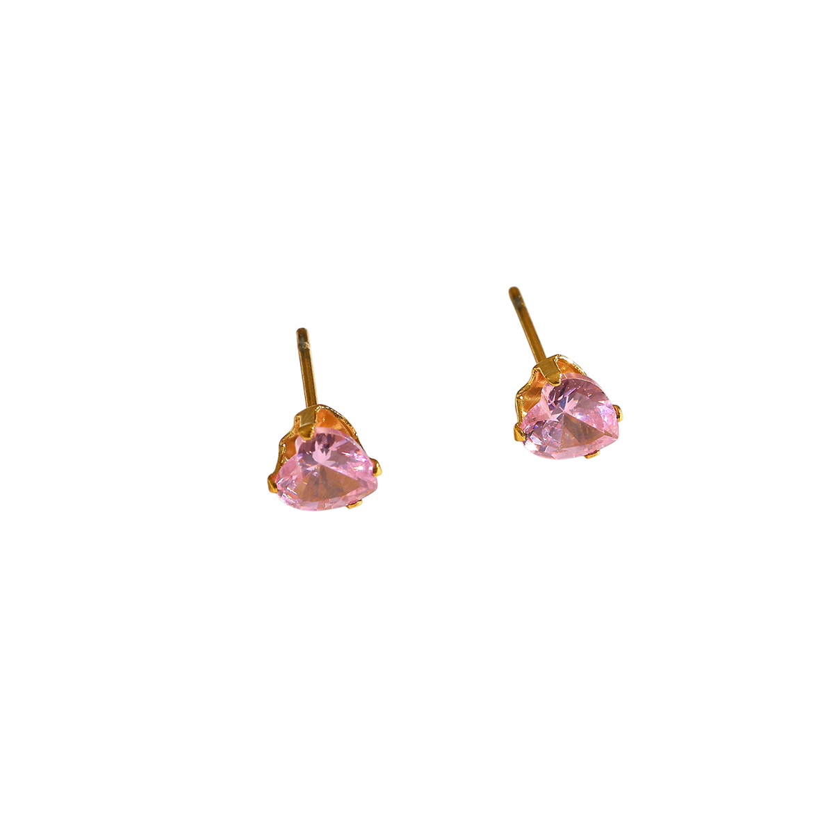 Aretes elaborados en acero inoxidable con chapado en oro de 18k y recubrimiento PVD, diseñados en forma de corazón y realzados con un circon rosa que aporta un brillo limpio, delicado y sofisticado.